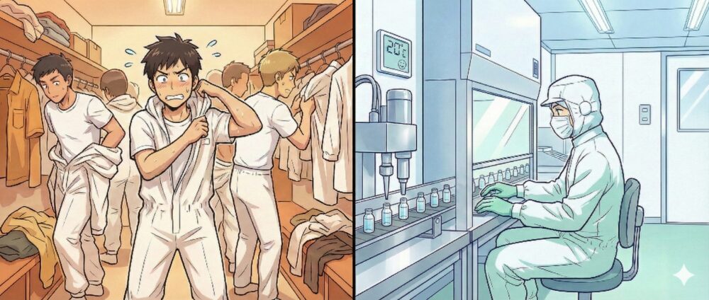 もしあなたが「化粧品工場って、実際はどんなところ…?」という疑問や興味を少しでもお持ちなら、クリーンルームでのリアルな仕事の実態――**「めんどくさいこと」と「実は楽なこと」**の両方を、ぜひこの記事で確認しておいてください。