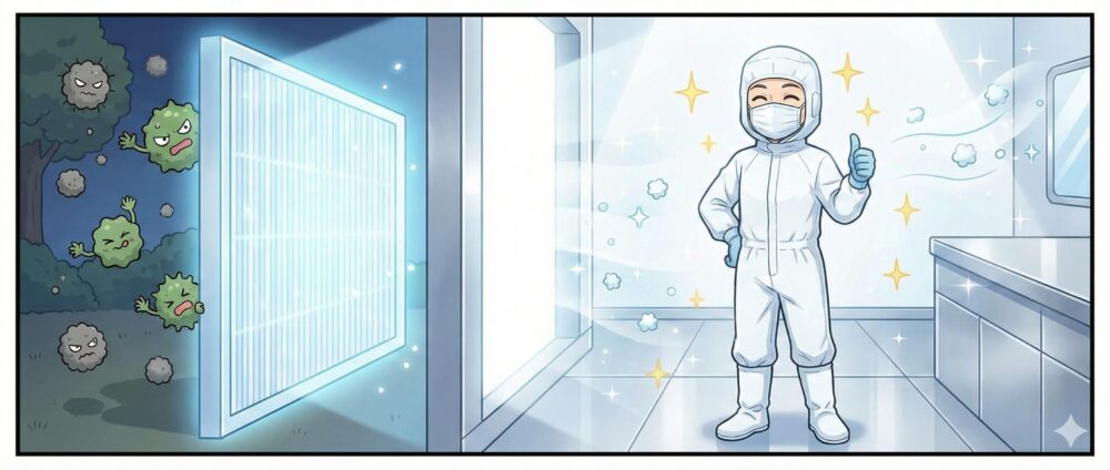 - 空気中のゴミや微生物を管理し、清潔さを保つ。