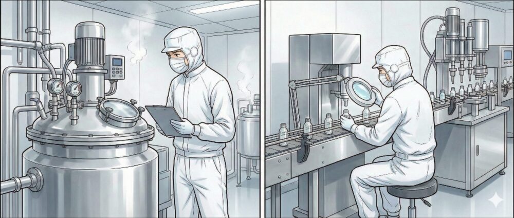 クリーンルーム内で行う仕事は、大きく分けて**「中身を作る仕事」と「中身を詰める仕事」**の2つがあります。それぞれの特徴を見ていきましょう。