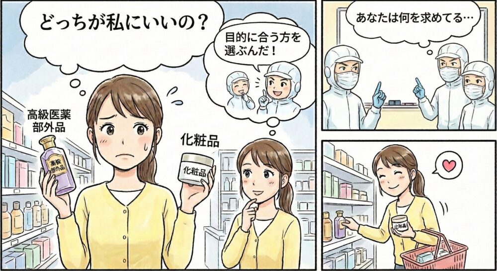 お店で商品を選ぶとき、「化粧品」と「医薬部外品」では、どちらが良いのでしょうか?