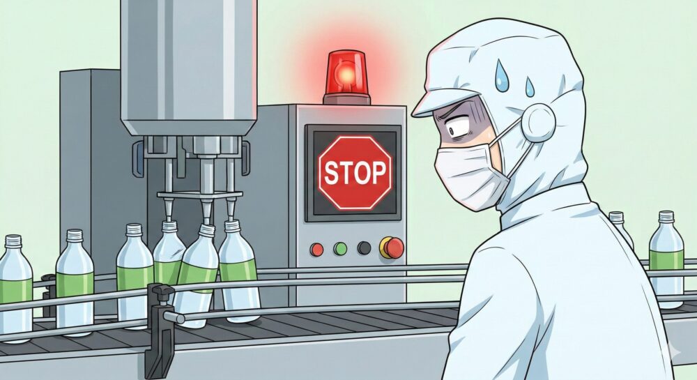 - 容器に充填したけど内容量が少ない、機械を再調整でタイムロス!