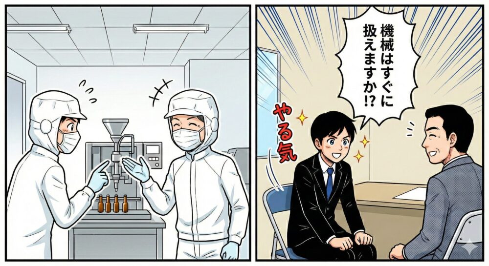 工場見学中も、実は面接は続いています。