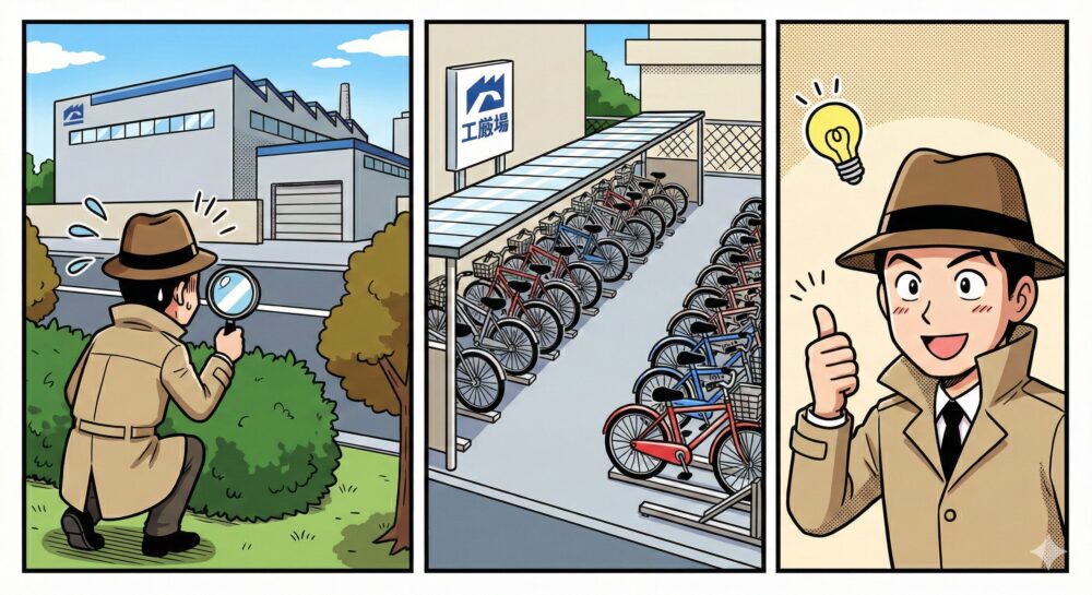 駅から近い工場なら電車通勤も多いので一概には言えませんが、自転車の数が多い=近隣のパートスタッフの在籍が多いと考えられます。
